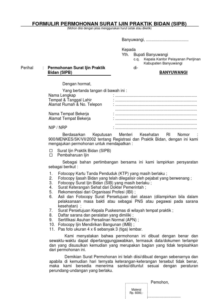 Setelah semua persyaratan terpenuhi, langkah berikutnya adalah mengajukan permohonan surat izin praktek bidan ke Dinas Kesehatan setempat. Permohonan dapat diajukan secara online atau datang langsung ke kantor Dinas Kesehatan. Pastikan Anda melengkapi formulir permohonan dengan benar dan menyertakan semua dokumen yang diperlukan.